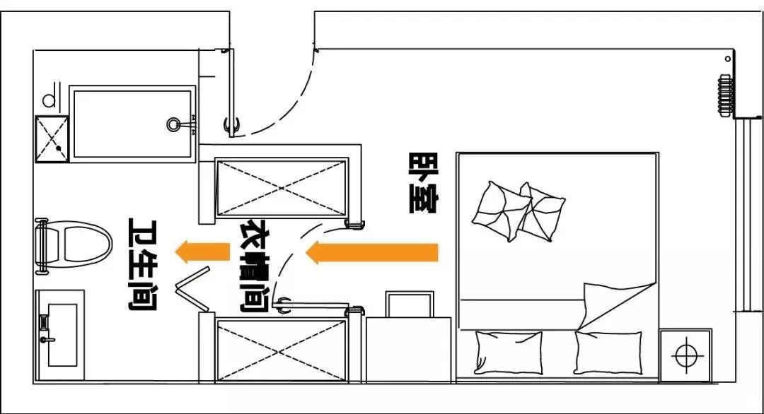 丨利用過道空間丨針對(duì)一些主臥,在通往主衛(wèi)時(shí)會(huì)經(jīng)過一段過道空間,好好利用這段空間,隔離出一個(gè)穿過式衣帽間。拿衣服,洗澡,換衣服,出來,動(dòng)線合理。