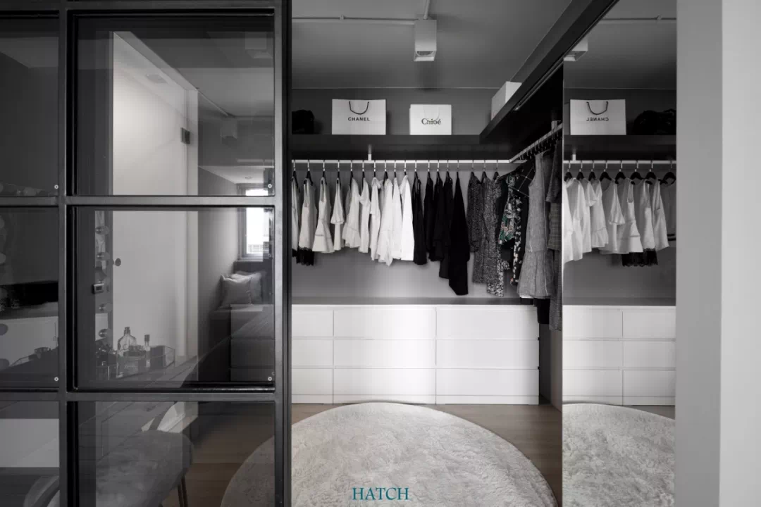 丨利用閑置空間丨另一種常見的辦法是,將閑置空間改成衣帽間,或者是衣帽間與其他功能區(qū)的合并。比如走廊、閑置的書房等。