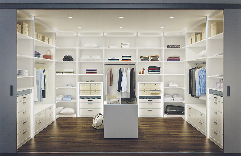 一字型和二字型布局適合狹長(zhǎng)的空間,中間可以行走,還得留出換衣服的空間。