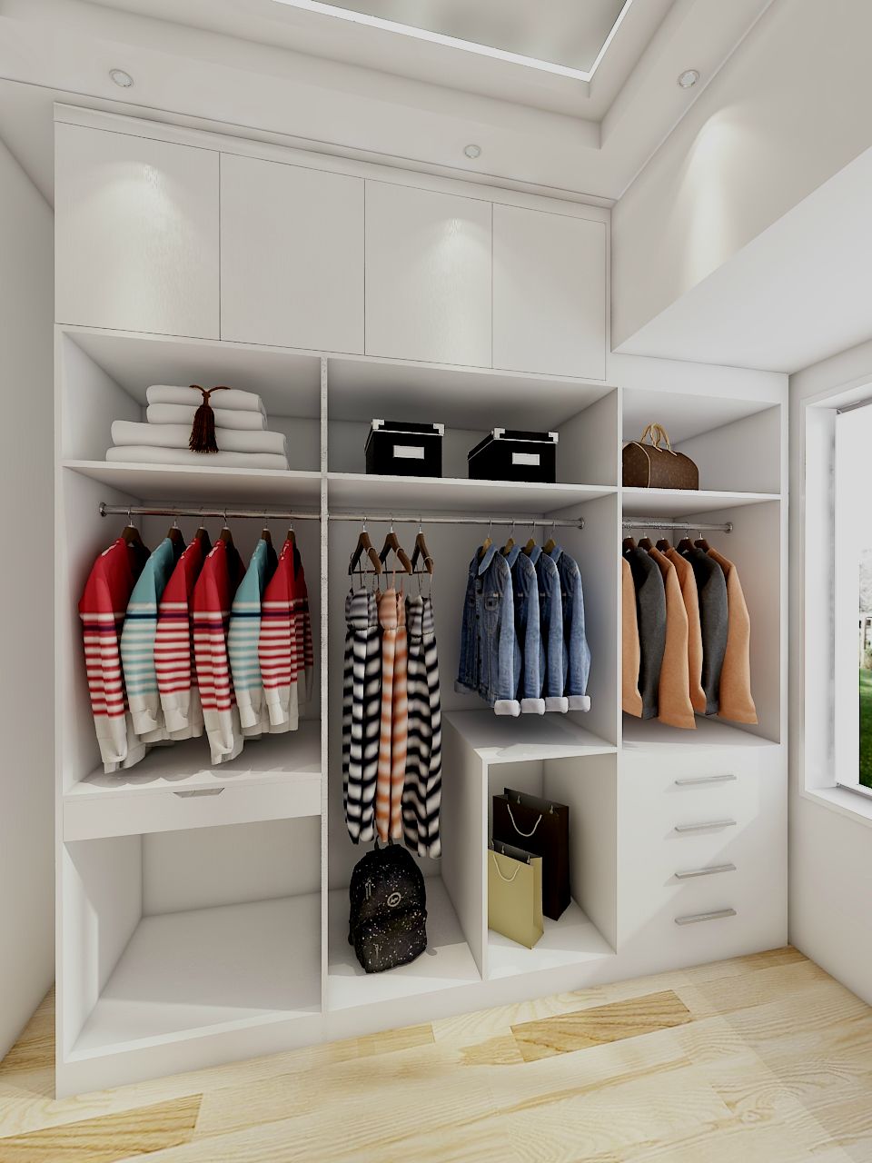 ◆根據(jù)樓層。為了不混合家庭成員的衣柜,可以按性別劃分區(qū)域,并且已經(jīng)按特定類別劃分區(qū)域。