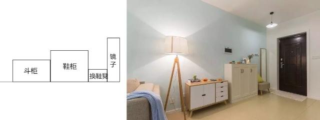 也就是說,如果你家過季鞋不放在玄關(guān)柜里,最小只需長80cm、寬30cm(由鞋子的長度決定)的區(qū)域,就能打造出一個功能相對齊全的玄關(guān)↓↓↓