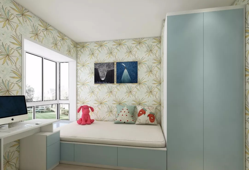 這間兒童房以冷色調(diào)為主,墻紙以米色為底色,印上大片的淺色花朵,令整個房間看起來趣味十足!純凈的藍(lán)色、干凈的白色,溫暖的米色用在女孩房里再合適不過了。