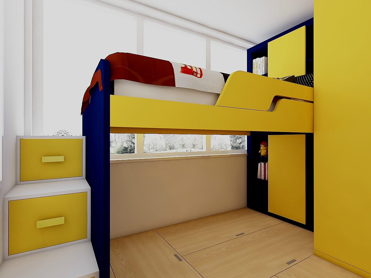 明亮、活潑的黃色搭配寧靜的白色,一動一靜的和諧,相映成趣!階梯式抽屜型衣柜,在方便上下床的同時,也有助于寶貝養(yǎng)成收納的好習(xí)慣!下層的榻榻米,即可作為孩子的活動區(qū)域,又能進(jìn)一步優(yōu)化收納!